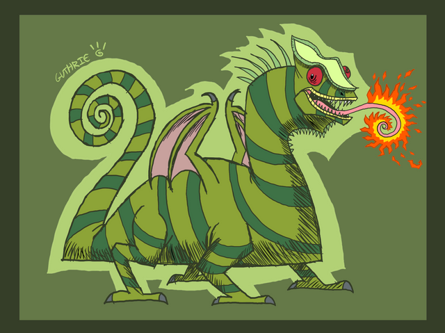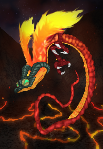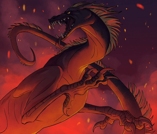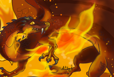 Not surprising to say, but are the most vicious and aggressive type of Fire dragon when the first moment you set your eyes upon it. Growing up to the size of a large house and living in the most extreme of living conditions, in which both lava and acid baths are a frequent, these dragons seem to naturally be entwined with fire itself. Capable of withstanding high heat temperatures and with a thick hide of scales, adventures are advised to avoid any kind of conflict when this dragon occurs.The young live in packs up to five, only when reaching adult hood, do they separate. With strong stomach acids, which contain a lot of gas, these dragons have to breathe or belch out fire on a constant basis. Otherwise they would burst or expel the gas out of another end. Legends has it, that their fire is so hot, it can even melt rocks as well as wood.
