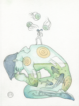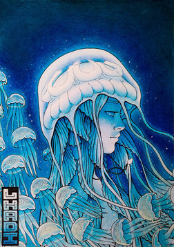#traditionalart #surreal #jellyfish #digitalart #characterdesign #portrait #sea #piranha #rakugaki #surrealism #technology #watercolorpainting