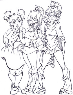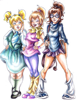 the famous chipettes in color.done in water color pencils.