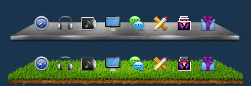 Gives your icons some cute shelves to sit on! A place just for icons to look sexier!You will have 4 panes: Wood, Metal, Grass, Glass .