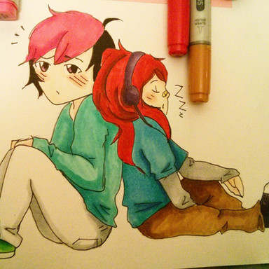 A drawing I made during physics "class" yesterday."Why does the scarf look like that???" I know, it looks weird, I was going to cut the drawing there but decided to continue and added her legs xD