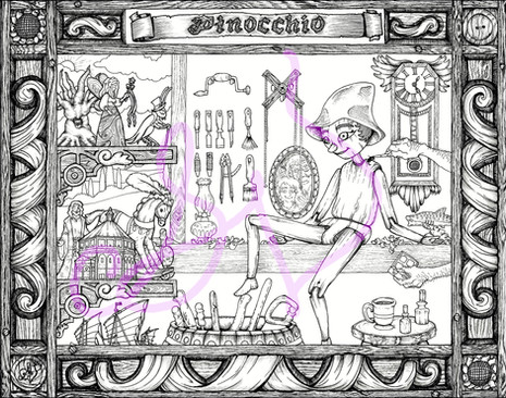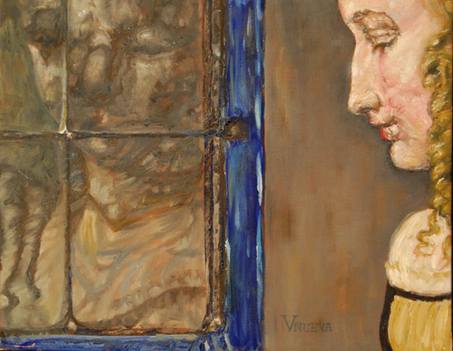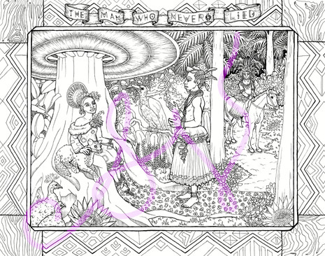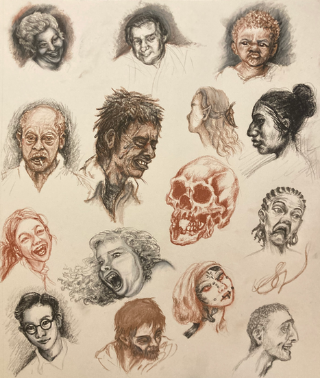 Ink on paper, with digitally painted background, 2015Drawn from life
