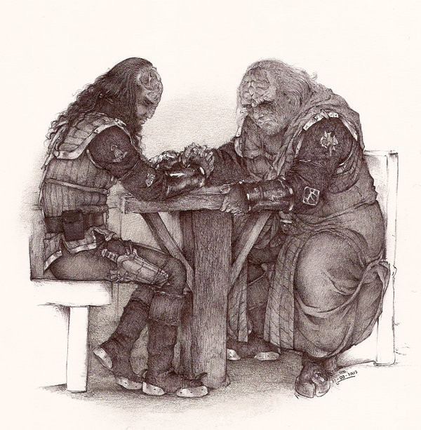 Amusing! Nice mix of alien characters and a mundane environment, and the lineart itself is very good. lol, that waiter is really not amused! (lol, so neither were the players. Oh RP romances, you are so awkward. lol)