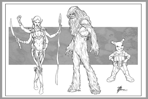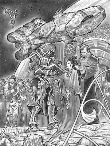 Nice pic. I think the Jedi looks a little like Dash Rendar mixed with Luke Skywalker. I do like the shading, though.