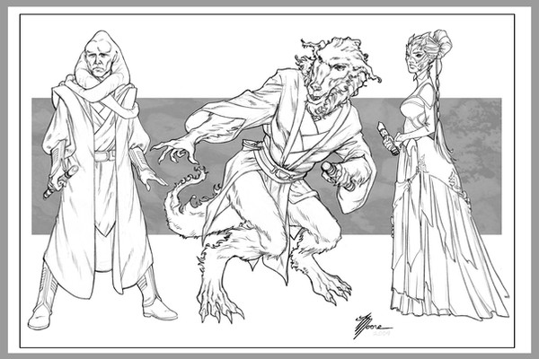 This is a piece I did for a Kenzer roleplaying book illustrating the human character types in the campaign.Related content