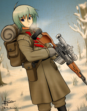The lineart is so clean and fresh, it makes me jump with delight! You're really good with guns too. Lol, I shouldn't stop there, everything is good in this drawing! The only thing I'd say could be improved would be how the lines are a little ragged, perhaps it's the resolution, I'm not sure, otherwise, my salutes to you comrade!