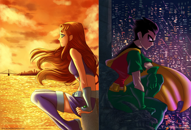 Beautiful. You capture the essence and personality of each one. I love it. As of now, I look at Robin and Starfire and think of me and my girlfriend. In the series, it was always evident how they always went out of their way to comfort, support, and protect one another; even when Robin was wrong or acting out of character, Starfire always remained faithful to him and who he was, even when the others gave up on him. To me, in general among relationships, there is no greater expression of Love and Faith than to stand by your loved one's side even when they are wrong. As humans, we are prone to error, and as such, we may affect those around us in a negative way (intentionally or not), that includes our loved ones and those who love us. Therefore, it is paramount that we recognize and appreciate those who still pour forth their love for us even when we are not right. For if anyone is deserving of having our hearts, it is them. Maybe I took this a bit far (and went on a tangent) but this couple to me illustrates a beautiful example of a sincere relationship. "Empathy" is a very important ability to possess. To feel as another feels, their happiness, pain, struggle, pleasure...this is how you truly get to know another and, in time, care for another.