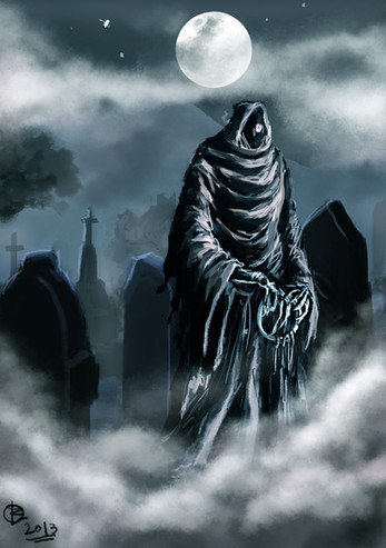 Fun piece done in my spare time.The idea is that he is an undead of sort, levitates and can transform into smoke, he used to be human, priest or a cultist, he guards something, the incense is a detering tactic, that harms intruders.