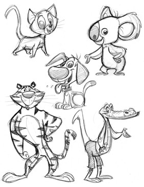 #animals #anthropomorphic #boxer #canine #character #dog #drawing #fish #mammal #marsupial #quokka #rough #shark #sketches #character_design #digital_art