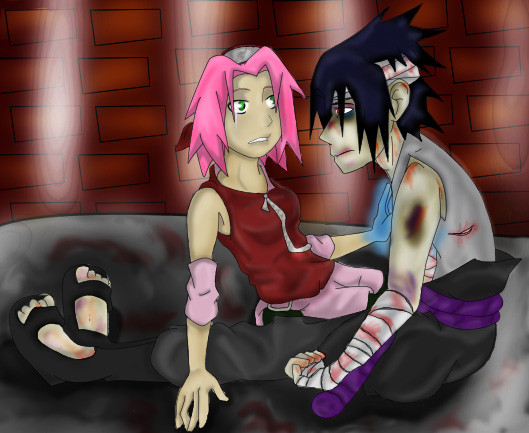 First of all, I love it. Its beautifully done. That being said, and I do hate Sasuke believe me I do and I hate to defend him in anyway. But this is something I had to agree with him on. You can never force someone to fall in love with you, and thats basicly what Sakura was trying to do to him whith the leaving scene. I'm suprised she didn't do 'I love you so why don't you love me?' line....Honestly she expected him to stay because she loves him? He has never give her any inclination that he MAY love her...never, not once. INFACT despite saving her (Because she's his teammate) he's called her all sorts of names and told her upfont 'I DON'T love you' he could not have made it clearer. But Sasuke is a basterd for hurting Naruto they where actualy friends sorta but good job on pic *Thumbs up*