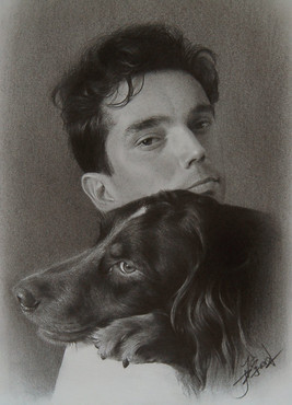 wow that is such a great drawing...i love the shading, also i really like him and the dogs!