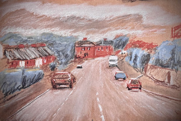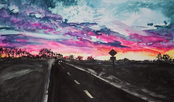 #australia #cars #clouds #dawn #daybreak #fog #frost #gouache #highway #landscape #landscapepainting #local #mountains #painting #pastel #roadtrip #scenery #sky #sunrise #traditionalart #traditionalartwork