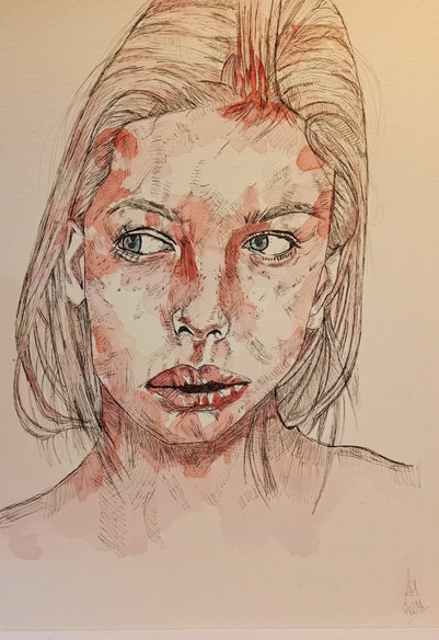 Hey, well, I'm just speechless with all this great commenting on this painting. So here goes, her name is Florence, she's french, and I took the photograph I based this painting on. Part of the concept of the painting is to make evident the whole process of making the painting, so you can see the white gesso preparation on the canvas, then the red acrylic as my back color. On top of that is the grid in chalk, which I used to transfer in drawing the face from photograph to the canvas. After that it was just painting in black and white with a little bit of blue mixed in the most interesting parts. On the top would be what is commonly refered to "finished painting" only you can see past that to the canvas at the bottom. It's the impression of certaing parts of the face that are totaly painted, and the rest fades and blurs away. I enjoy doing a totaly finished piece, but this is much more emotional and expressive, and it was finished really fast too. Thank you all for your great comments.