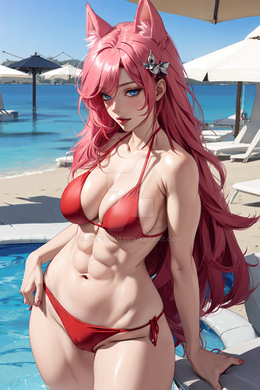 #abs #bikni #foxears #furry #ai_generated #muscularfemale #anthrocharacter
