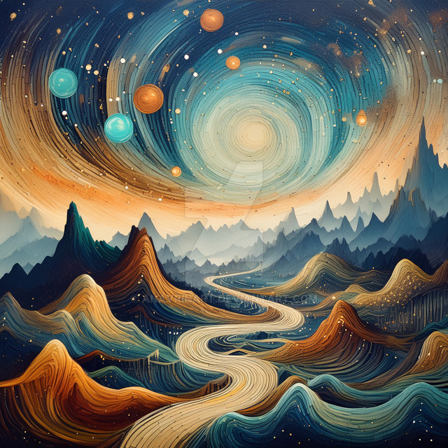 #abstract #autumn #autumnal #contemporary #dreamlike #earth #energy #ethereal #flowing #forest #harmonious #landscape #modern #motion #mountains #mystical #nature #nouveau #organic #river #serene #surrealism #swirling #symbolism #tree #vibrant #water #waves #art