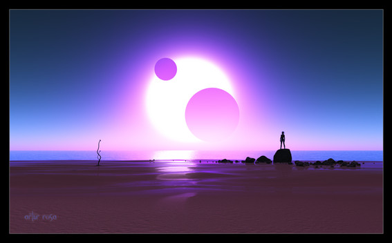 amazing! i love how the planet and moons look and the shadows are so cool! the beach is really nice too. the real question now is, who stacked the rocks? O.o