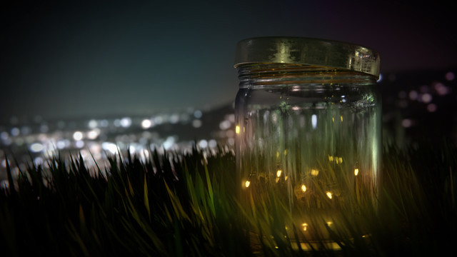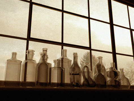 I love the idea, I have sometimes thought about doing something like this I think the blinds and their shadows was a very interesting touch but still makes the tree-bottles a bit hard to appreciate. But it also provides a good pattern in the refraction of the glass. I love the warped shape of the palm tree bottle