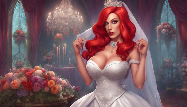 #digitalart #fanart #cartoon #drama #redhair #digitalpainting #abs #adoptable #ai #anime #artist #artwork #boobs #cute #deviantart #fantasy #fantasyart #fit #girls #illustration #jessicarabbit #sexy #teasing #weddingdress #curvywoman #waifu #artstation #wedding_dress #art