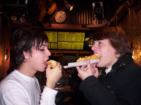 So here's another picture that almost made me fall out of my seat laughing -- this is me (center) and my friend Noah (left) eating pizza at a really expensive Italian restaurant in Edinburgh. Enjoy!Related content