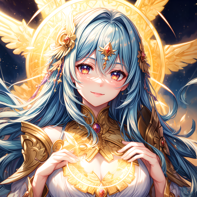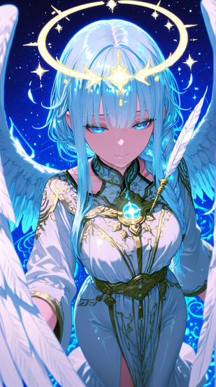 #angelic #animegirl #cute #digitalart #halo #ornate #aiart #angelgirl #angelwings #animeandmanga #blueeyes #whitehair #artificialintelligenceart #stablediffusion