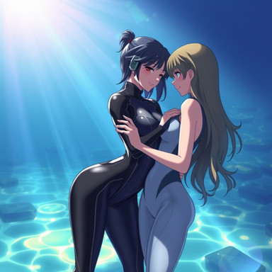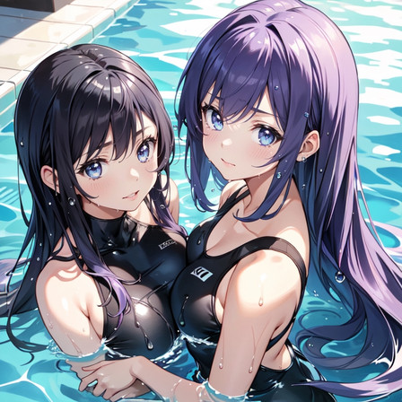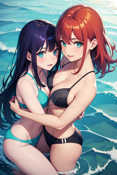 #2girls #anime #digitalart #forest #swimsuit #aiart #blueeyes #hugging #longhair #embracehug #aiartcommunity #stablediffusion