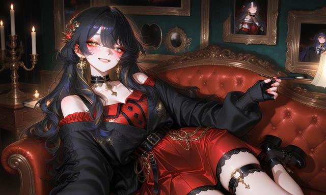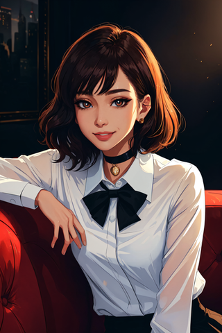 #cute #digitalart #girl #shorthair #aiart #animeandmanga #browneyes #brunette #grinning #thighhighs #victoriandress #stablediffusion