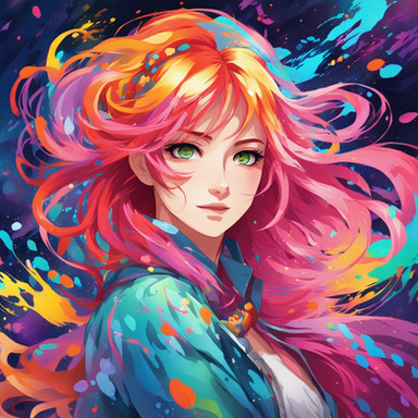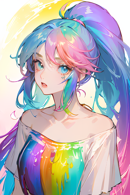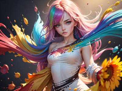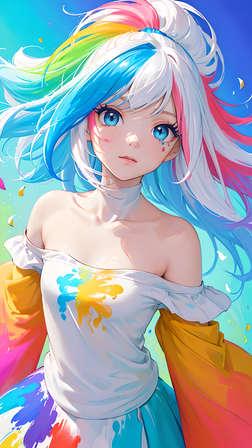 #anime #digitalart #girl #aiart #blueeyes #colourful #paintsplatter #rainbowcolors #rainbowhair #splatter #aiartcommunity #stablediffusion