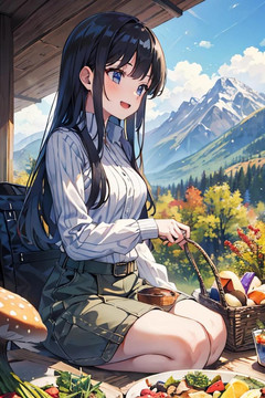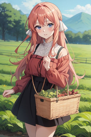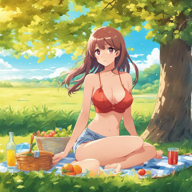 #animegirl #cute #digitalart #aiart #animeandmanga #freckles #greeneyes #orangehair #picnic #picnicbasket #stablediffusion