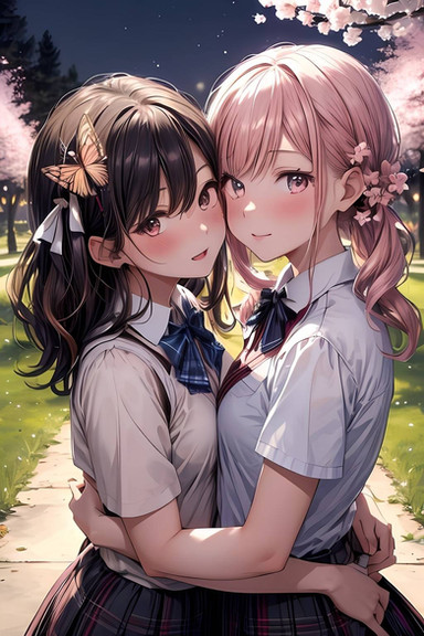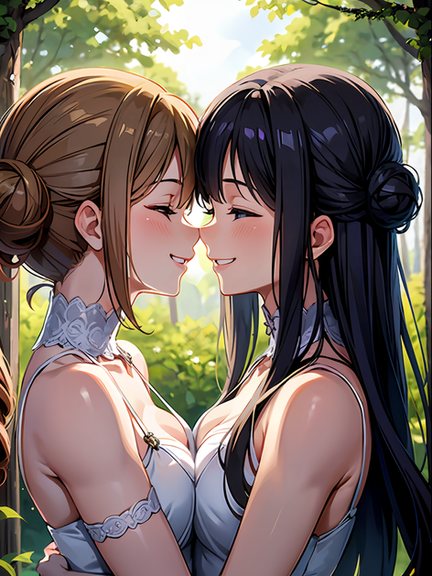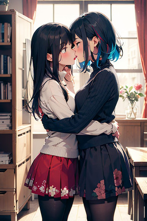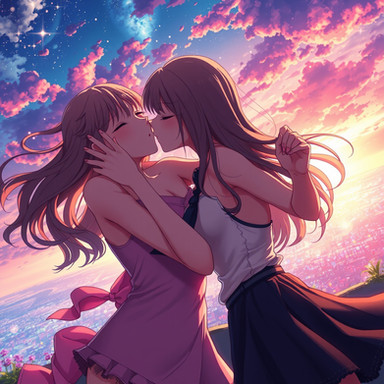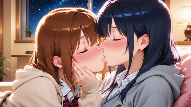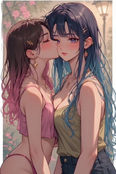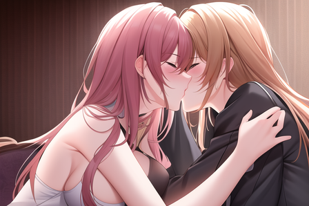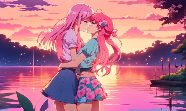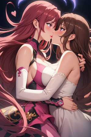 #anime #digitalart #girl #aiart #2girls #animeandmanga #brownhair #kissing #pinkhair #artificialintelligenceart #artificial_intelligence_art #stablediffusion