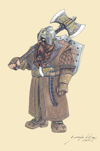 Firebeards: Hot-headed, warlike and tough, Firebeards came from Nogrod (Tumunzahar) in the Blue Mountains. Supreme metalworkers, they are said to have invented maille. They are also hailed as the greatest Blade-smiths among Dwarves, and naturally many of the best came from their ranks, such as: Gamil Zirak (said to be the greatest of all times, maker of the knife Angrist, the sword Andúril and the Dragon-Helm of Dor-Lómin), as well as the legendary Dwarf-smiths Telchar and Garmur. They befriended the elves with whom they traded profusely, and were commissioned by King Thingol of Doriath to delve Menegroth as well as to create treasuries and weapons for him. The necklace Nauglamír was their greatest creation for the King, and the cause of equally great woe.🎨 Your encouragement and appreciation fuel my passion for creating art. If you've enjoyed my work and would like to support it, I'd be incredibly grateful for any tips you're willing to give. Your generosity allows me to continue pursuing my artistic endeavors, and every little help counts.