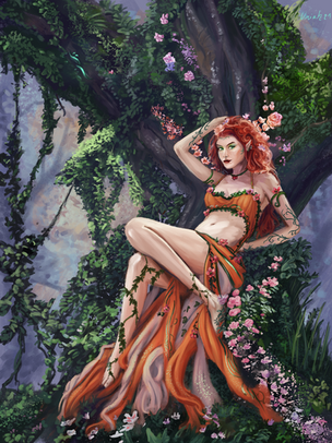 Sylvatica, idea of a dryad I had a while ago. As protector of the forest, she especially presides over plant life and delights in trees growing wild.Related content