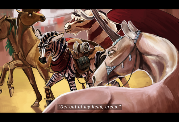 I've been seriously inspired by the works of RAE-J lately, so here's a movie-poster-inspired take on our plot, featuring the grumpy zebra man!