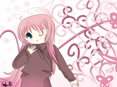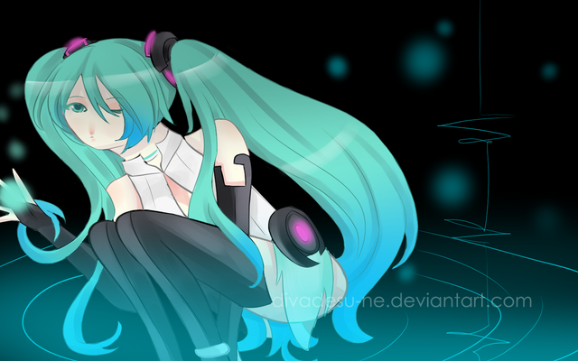 Yays! It's done!At first when I sketched this picture, I was thinking to go all techy and futuristic with the background - you know, holographic screens, wires, etc. Then when I started to actually do the background, for me, it just didn't fit GUMI at all. So, I made it very carefree, something more like her character.
