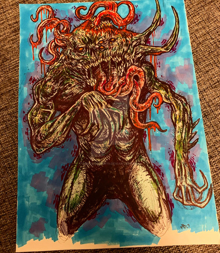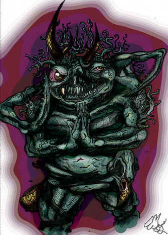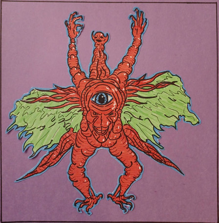 Made with alcohol markers and construction paper.Messing around with markers again, this time I made a plant monster sitting down.