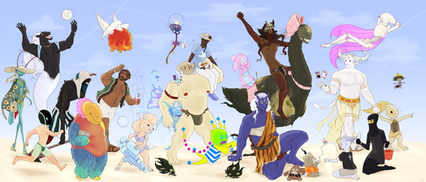#albino #alien #arms #bathing #chicken #comic #cute #fluff #four #friends #friendship #frost #giant #party #pool #punk #suit #summer #swimming #tall