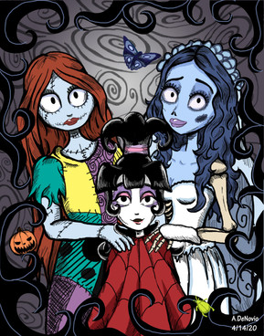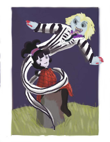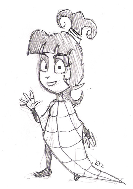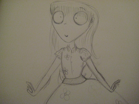 While I was on vacation I had an idea for another Beetlejuice drawing. I thought of drawing lydia in her regular clothes and then (almost like a reflection of her other self) her in her red spiderweb poncho.I will get around to inking and coloring it, but I'm waiting for some copic markers to color it in (it would look better that way then painting it)