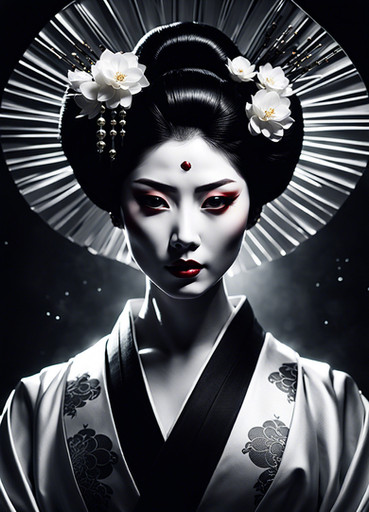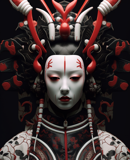 #black #ghost #ghosts #haunting #kabuki #red #white #makeup #portrait #makeupportrait #midjourney #midjourneyart