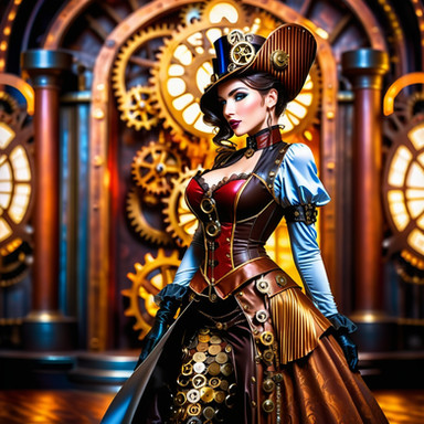 #beauty #steampunk #ball #bold #boots #brass #clockwork #corset #couture #elegance #fashion #intricate #leather #machine #mystery #regal #victorian #midjourney