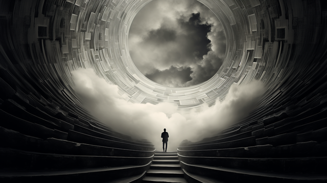 #clouds #dark #daylight #fantasy #fog #light #mist #mountains #person #tunnel #cellphone #wallpaper #cellphonewallpaper #midjourney #midjourneyart