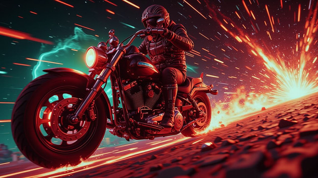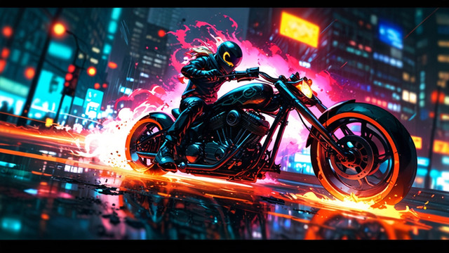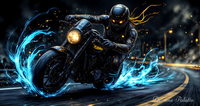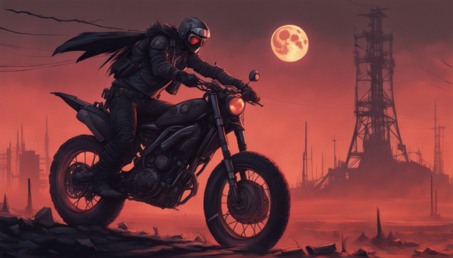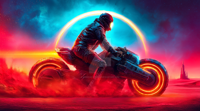 #digitalart #characterdesign #videogamefanart #wallpaper #motorcycle #apparition #cyberpunk #dark #design #futuristic #glow #moon #neon #shadows #sleek #speed #fire #midjourney