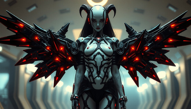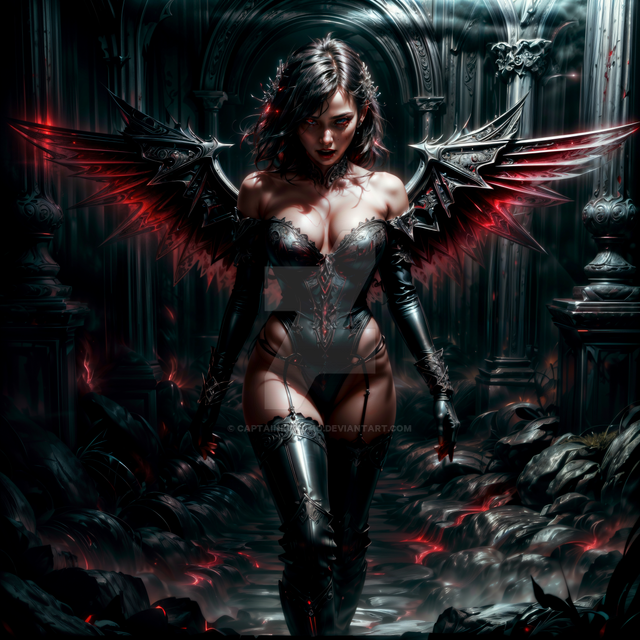 #armor #fairy #feather #guardian #armored #atmosphere #brooding #contours #dark #design #fantasy #fantasyart #feathered #female #figure #hair #imposing #majestic #metallic #otherworldly #red #shadowy #standing #supernatural #wings #midjourney #midjourneyart