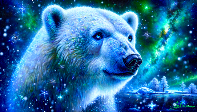 #digitalart #wallpaper #bear #arctic #aurora #celestial #constellation #cosmic #galaxy #glowing #ice #icy #landscape #lights #luminous #mystical #night #northern #polar #polarbear #reflection #sky #stardust #surreal #triangles #universe