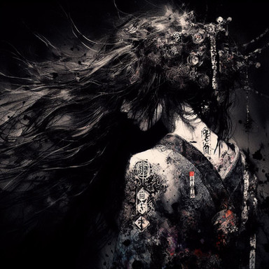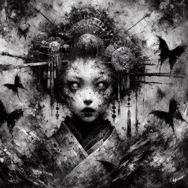 #abstract #artistic #brushstrokes #chaos #colors #contemporary #despair #digitalart #emotional #ephemeral #ethereal #fusion #geisha #haunting #obscured #plume #portrait #purple #resignation #smoky #surreal #traditional #turmoil #midjourneyart #midjourneyv6