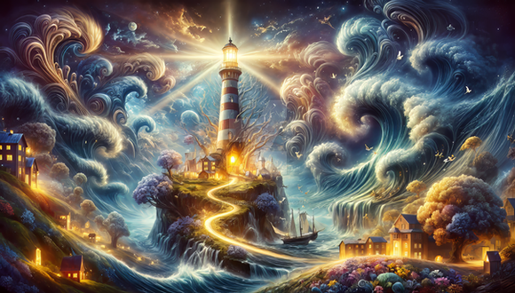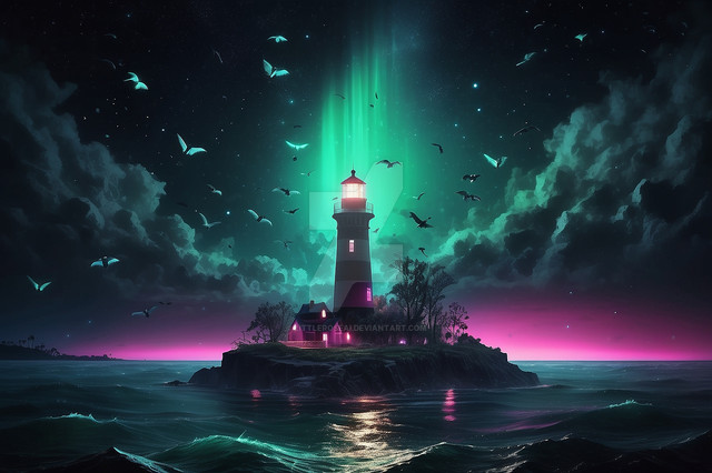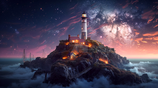 #clouds #light #sky #beacon #boundary #craggy #flicker #glow #guide #isle #ivy #lighthouse #luminescence #mystical #navigation #ocean #refuge #rocky #sea #sentinel #serene #souls #tower #verdant #midjourney #midjourneyart
