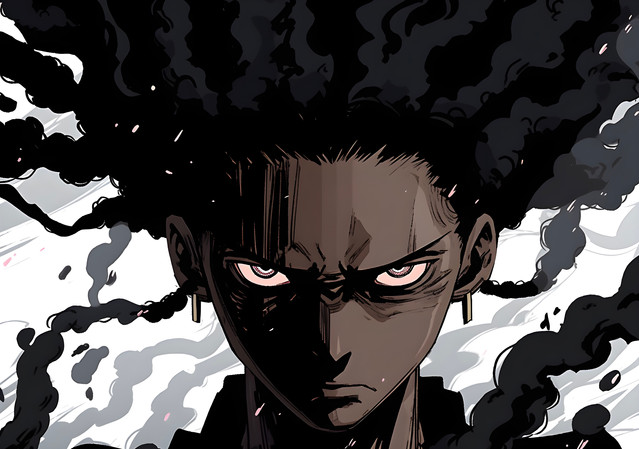 #digitalart #anime #characterdesign #afro #atmosphere #attitude #charcoal #contrast #dark #enigmatic #figure #fog #glow #grit #hoodie #intensity #monochrome #moody #mystery #powerful #shadow #silhouette #sitting #smoke #sneakers #solitude #streetwear #style #urban