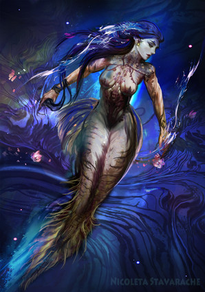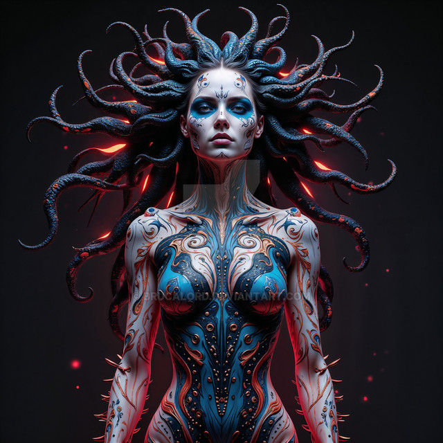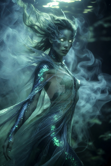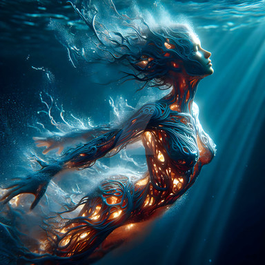 #alien #aquatic #atmosphere #blue #dark #design #detailed #energy #environment #ethereal #fantasy #floating #glow #immersed #intricate #light #mermaid #mysterious #otherworldly #particles #power #red #skin #tendrils #translucent #vibrant #watery #midjourney #midjourneyart #weeklyaiartchallenge