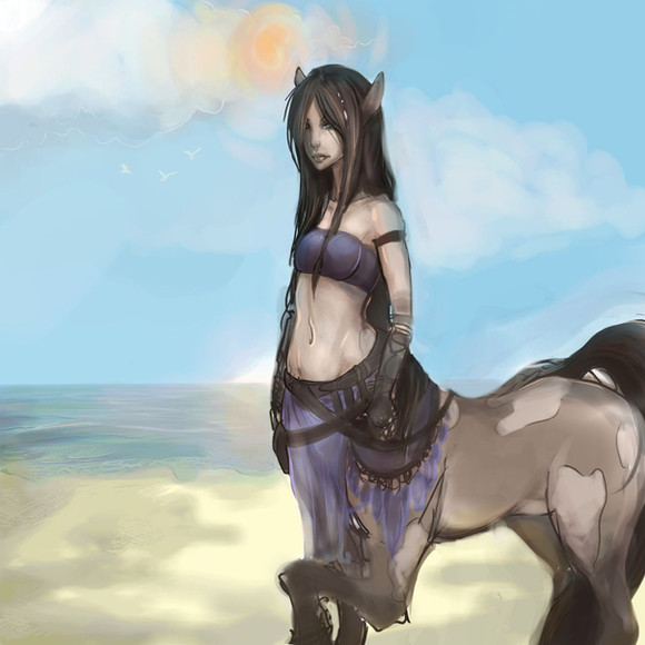 Earlia in the week I had a dream about desert centaurs. They were all grays and lighter browns with light hair. In the dream I can remember a particular female with white hair and a grey coat, she was captured by humans and taken to a slave trade to be sold. I can't remember how it ended but I really wanted bring this particular image to life :/ unfortunately I don't believe I have executed it as well as I had originally planedI used a photo reference for the human half: [link] by *jagged-eye no other references used.