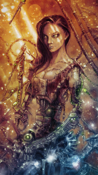 That is one awesome-looking robot! Stunning detail on both the robot and the woman, and I love the colours.
