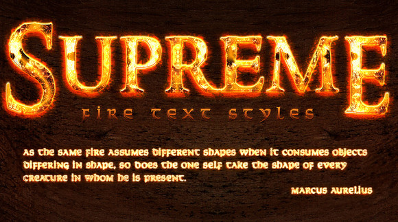 Fire Text Effects Bundle is a special pack containing 3 unique burning text items with a a total of 14 astonishing fire / burning + 3D molten text effects, very easy to use and customize.Items Included: Real Fire Text Creator, Supreme Fire Text Styles, Melt It - The Premium Incandescent 3D Text Maker