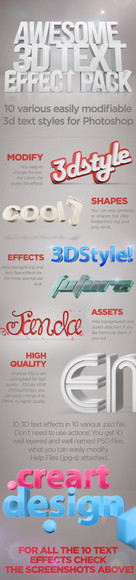 Premium 3D Text Effects Bundle is a special pack containing six GraphicRiver items having more than 750 sales totally.There is a total of 28 astonishing 3D text effects to boost your designs, all on half the price of the individual items!